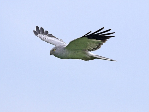 After about a mile Gethin suddenly stiffened and exclaimed “harrier”. He said he had heard the characteristic ‘yip yip’ call and sure enough up to our left we saw a male hen harrier drifting away across the heather and up over a conifer plantation, before being lost from view. “Probably a food pass”, Gethin said laconically. Unlike me he had no reason to get excited; at this season surveying moorland birds is right at the centre of his work for the RSPB. In fact he was so ‘on it’ that I was beginning to feel laboured and slow. There was a time when I used to teach him this stuff…. There is no doubt that hen harriers are the moorland poster boys for conservation, particularly the males. Apart from anything else they are so beautiful: soft, pale grey plumage, almost white in some lights, with ink black wing tips and large yellow eyes. Their long slim wings, and a tail that flexes and fans are superbly adapted to tilt and slide across the heather, pouncing at the slightest movement from a vole or panicky pipit. I once held one of these extraordinary birds and I remember how its beautiful yellow eyes looked back at me with the blank indifference of planetary moons – the gaze of untroubled evolution. Endlessly patient they drift like pale ghosts across this dark landscape, conspicuous and yet often unseen in places where people rarely go. Gethin set up the telescope and settled into his own endlessly patient vigil. He was completely tuned in scanning the hillside for the smallest movement, and eventually it paid off: he saw the male settle on a rock about half a mile away and nearby he found the female, her streaked brown plumage neatly camouflaged against the heather. She seemed to be eating something, probably from the food pass. When the females are incubating eggs the males will fly in with food and use that ‘yip yip’ to call her off the nest. The food pass is often spectacular with the female turning upside down in mid air to catch the prey in her talons as he drops it.