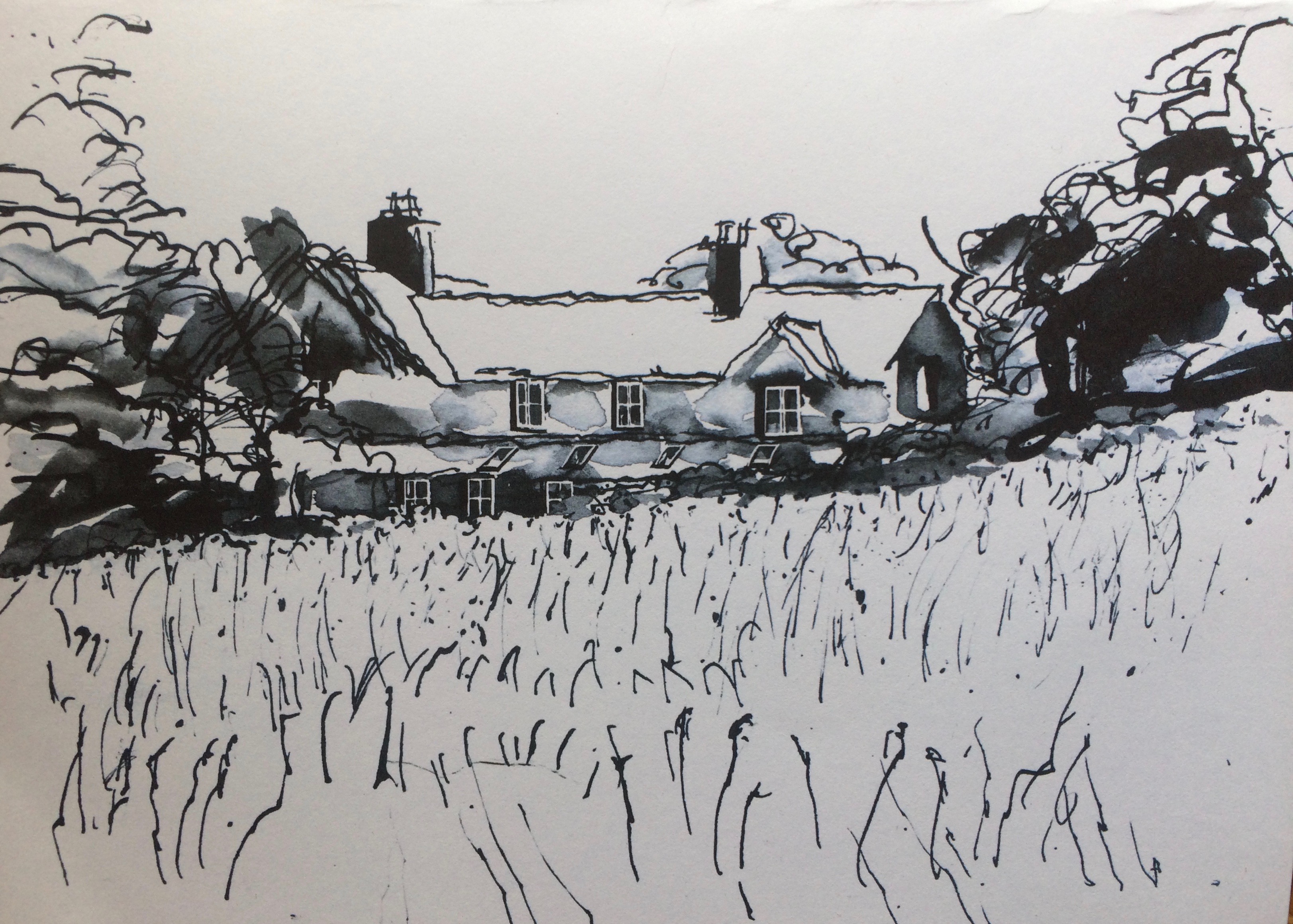 Last evening, when the day had cooled down a little, I strolled through the field, squinting into the low sun, to see what I could find. The tawny grasses twitch and ripple like the flank of an animal as I brush by. A yellow spread of greater birdsfoot-trefoil and autumn hawkbit underscores them and is everywhere underfoot. Butterflies: meadow browns, ringlets and this year scores of small skippers dance and dart, sipping nectar from the birdsfoot–trefoil and stately marsh thistles. I kick up a small blizzard of pale translucent moths from between the grass stems. A whole childhood of grasshoppers flick and clamber away from my boots, then settle back to their lazy stridulations, sounding like a host of old fashioned bicycles free wheeling into the sunset.