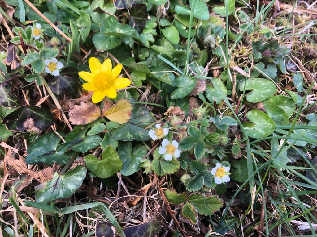 It is a blue-sky morning, fat with the promise of early spring and I am standing at the bottom of a tight, single-track road just across the river from where I live. The road rises steeply to the north, winding through pastures and woodland, until eventually it reaches the open hill country above. I feel full of expectation, eager for clues of renewed life. At first sight the place looks unchanged since Christmas: the ground hard and bony, grass cropped short and the trees bare, but I can smell new growth: a rising succulence that is putting new flesh on winter bones. There is fresh unfolding foliage on honeysuckle, cleavers, herb Robert and cow parsley. Yellow stars of celandines light up the hedge bank with a brassy optimism, the plain white flowers of barren strawberry around them are like maids attending a dowager. Above me a goldcrest is stitching its high frequency song whilst a crow yells in a coarse f-off sort of way from nearby woodland. Abruptly a pheasant coughs like somebody tearing metal. A lizard, my first of the year, is more movement than image, slipping between dead grass and emerging nettles.