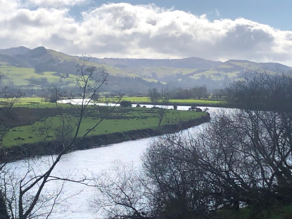 Turning round and looking south the escarpment edge of the Cambrian Mountains, although five miles from here, is sharp enough to cut your finger on today. In the foreground the river, a glittering blue slash across the landscape, looks benign and easy, but only days ago it bulged ominously with coffee coloured water moving with a remorseless force. En route from Aberystwyth to Shrewsbury a train trundling along the valley gives a mournful hoot: a come-hither sound that has me longing to travel. It has been a hard year.