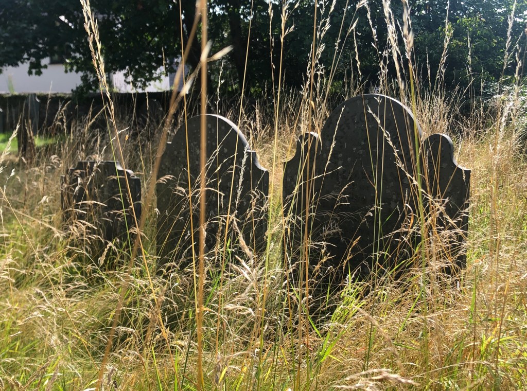 It is only a scruffy patch of grass really, about 20 yards square at the back of the churchyard, where nobody will notice it. By late summer the pale swaying grass stems gleam in the afternoon sun, lending a soft haze to the dignified headstones, which they partly obscured. Every headstone here is slate, no doubt hacked from the quarries only a few miles away across the Dyfi.